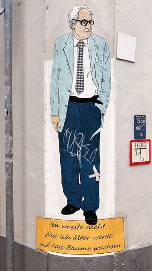 Ein weiteres Motiv, ein Portrait des Optikers Rudolf Rheingans, Begründer von „Rheingans Brillen“ (Hüxstrasse 25) findet sich in der unteren Hüxstr./Schlumacherstrasse
